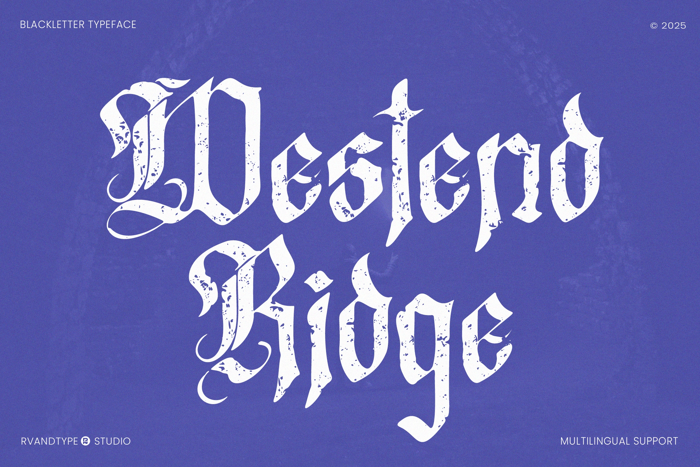 Available at Rvand Type, Westend Ridge offers a modern blackletter font twist. With smoother lines and a more refined structure, it balances the dramatic style of traditional blackletter with a more approachable tone.