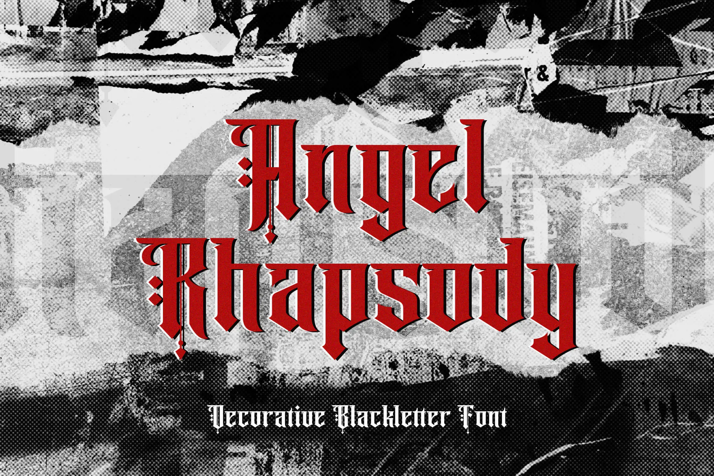 The elegant blackletter font aesthetic of Angel Rhapsody makes it suitable for projects where you want a softer, yet still historic and impressive look.